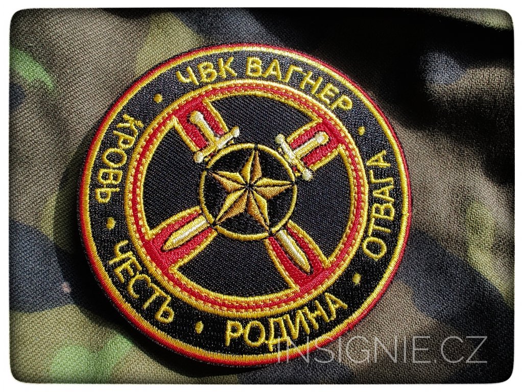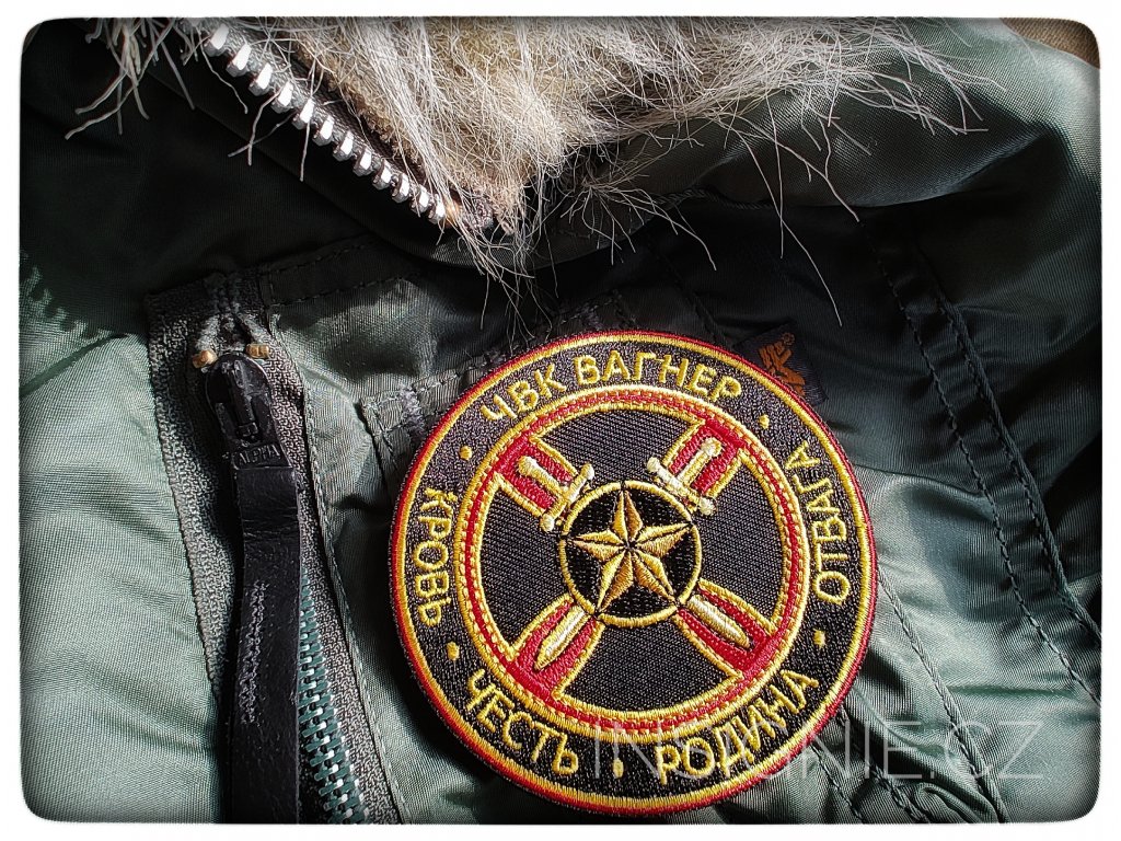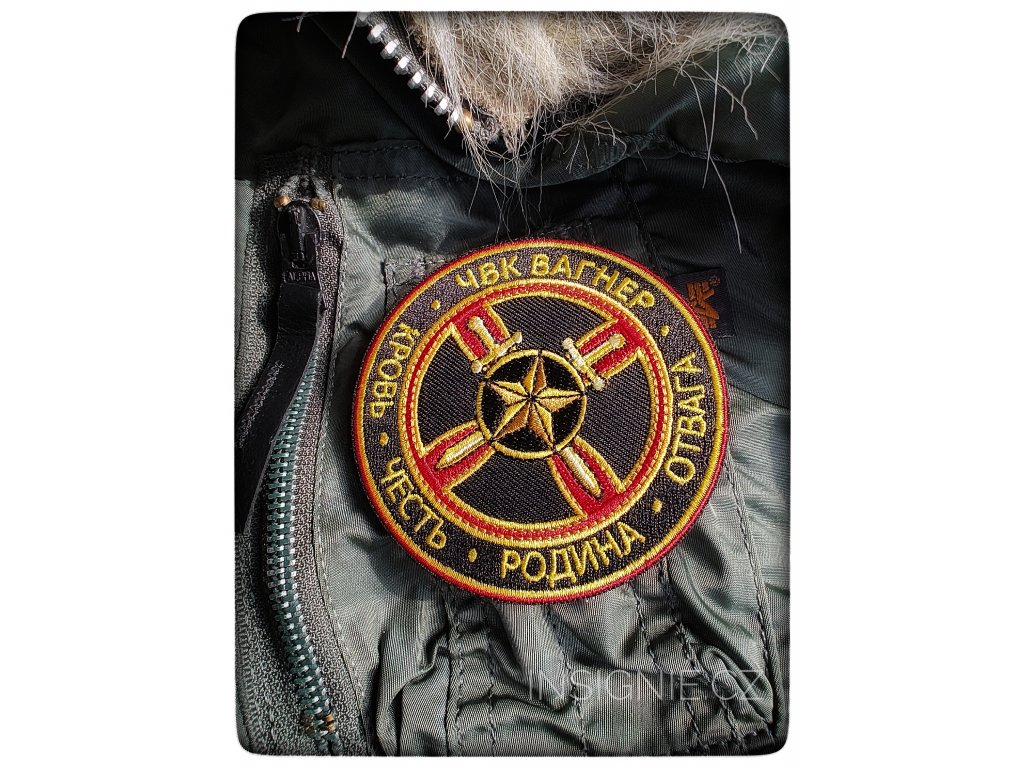 Vyšívaná nášivka o průměru 8 cm, suchý zip.