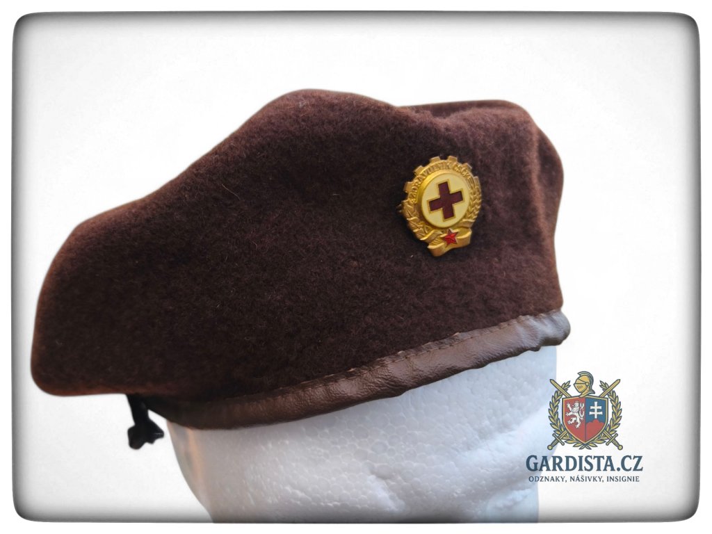 Originál baret, který byl součástí uniformy (stejnokroje) zdravotníků Československého červeného kříže (ČSČK). Používán v období 60. - 70. let, stáří 50 až 60 let. Bez poškození, včetně odznaku.