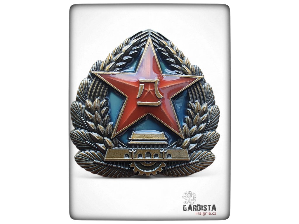 Čepicový odznak příslušníků ČLOA (Čínské lidové osvobozenecké armády).