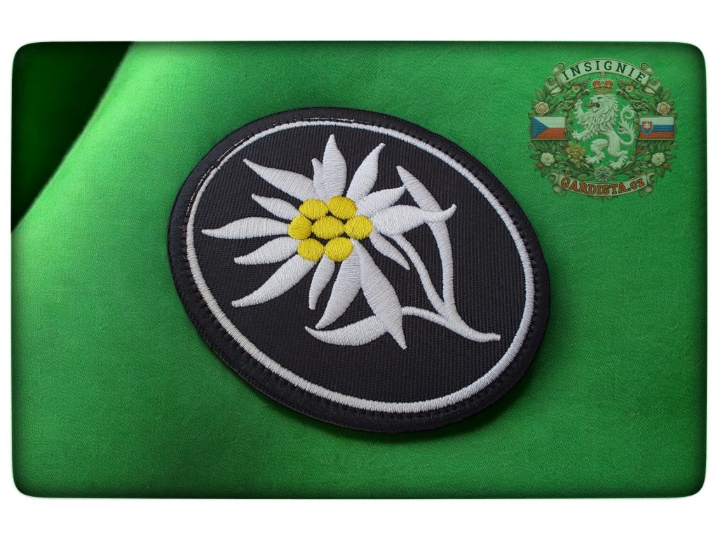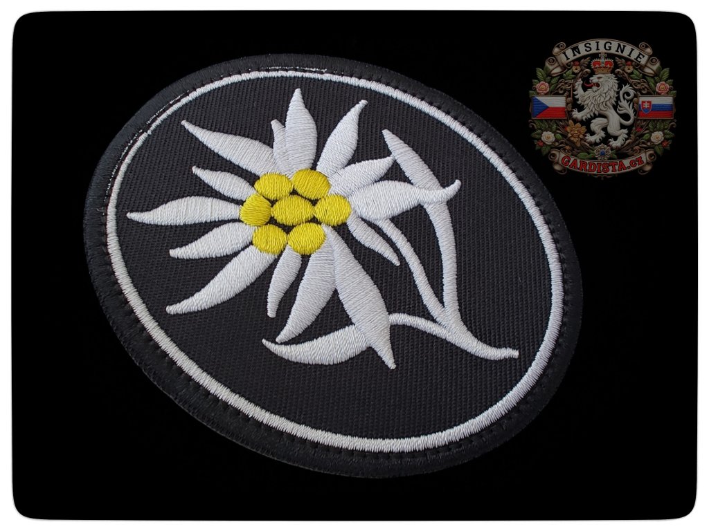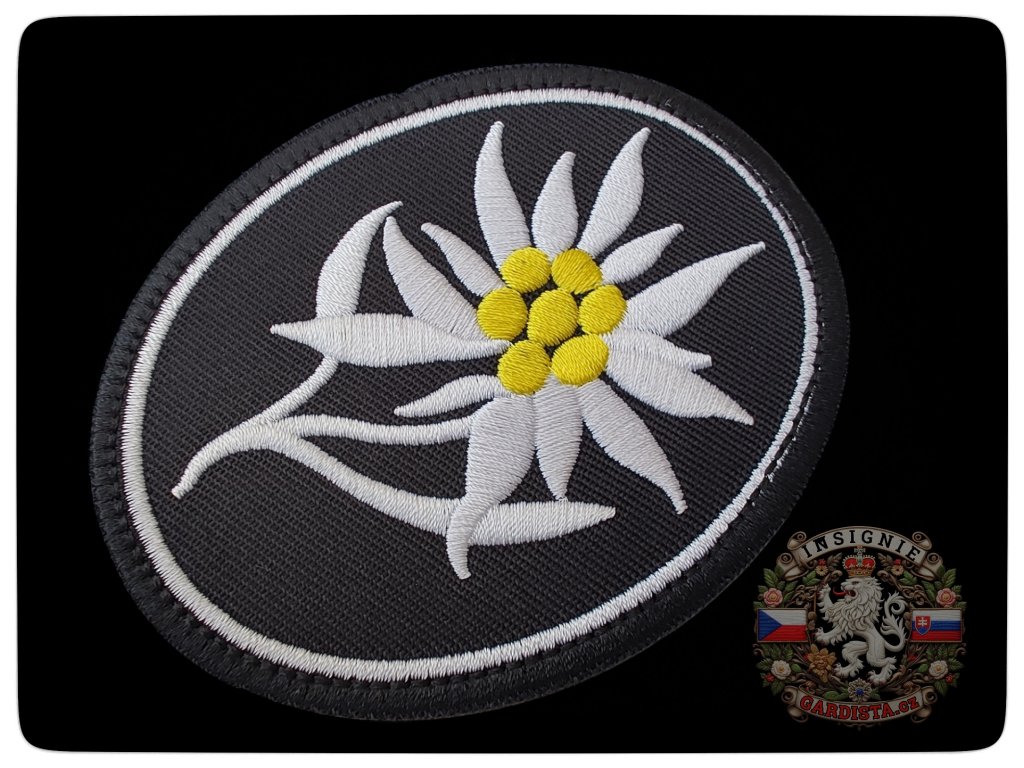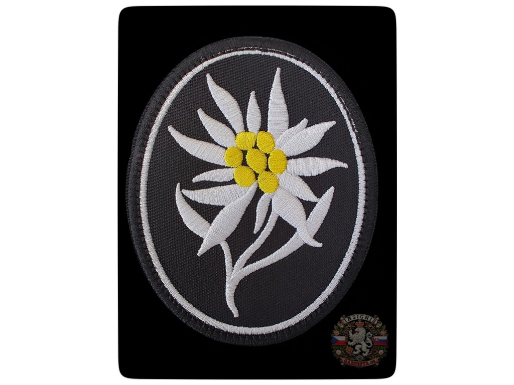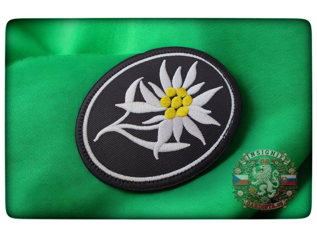 Oválná nášivka s Alpskou protěží (Edelweiss), používaná jako rozlišovací znak jednotkami Waffen SS.