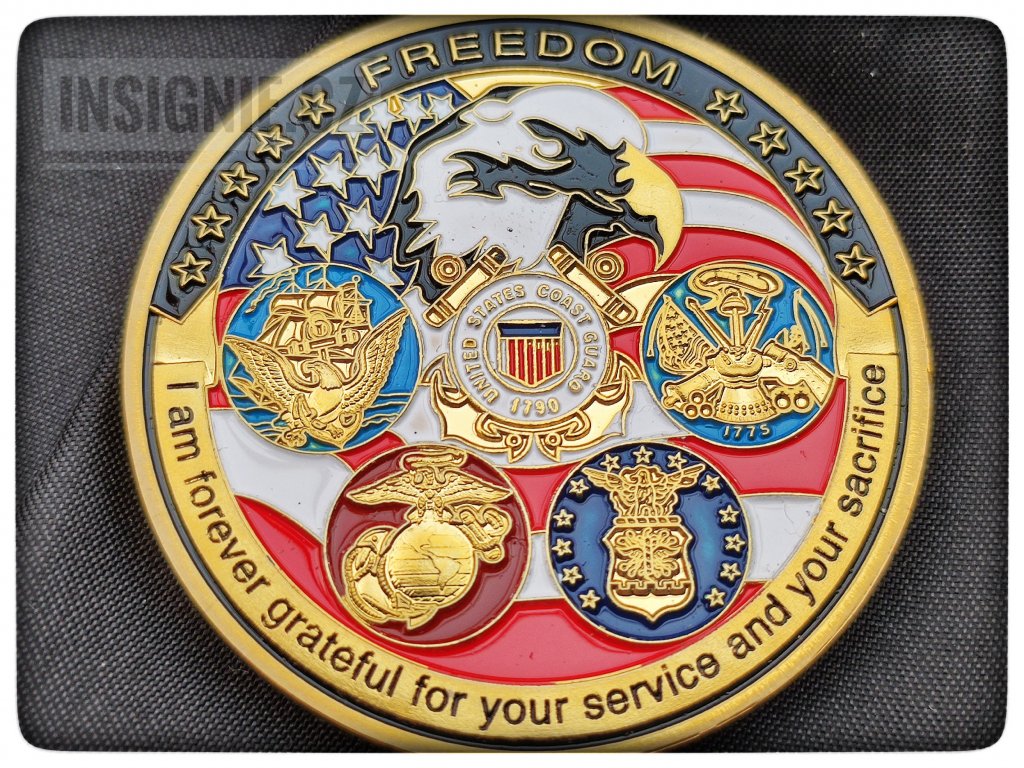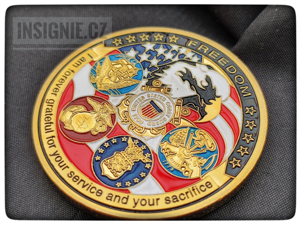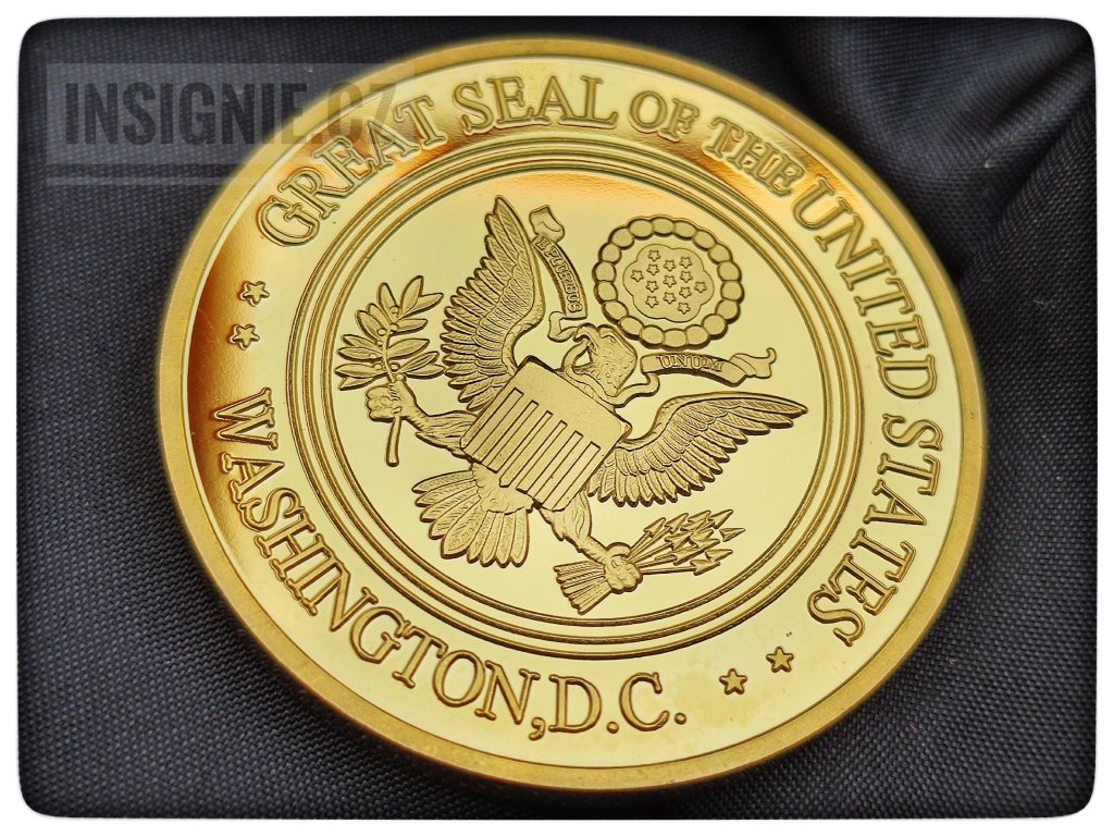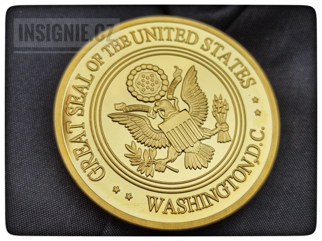 Sběratelská medaile USA s námětem pěti složek odpovídající pěti ramenům budovy Pantagonu - hlavního štábu vojsk US ARMY na averzu a velkým státním znakem USA na reverzu.