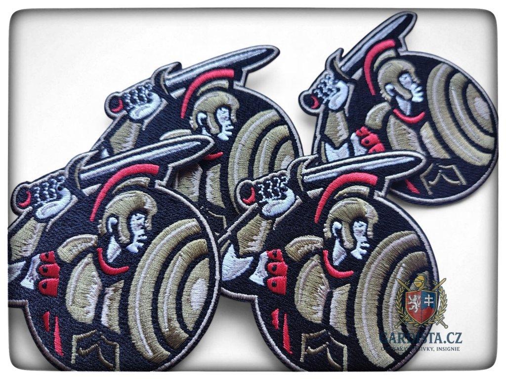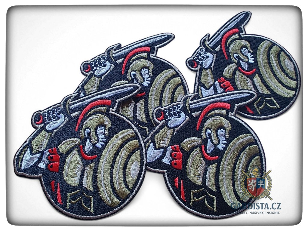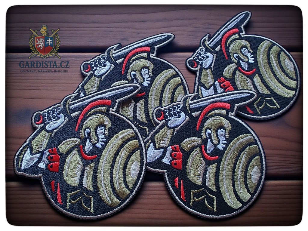 Kvalitně, s důrazem na detail, zhotovená nášivka kulatého tvaru se symbolem Sparťana - spartského vojáka.Průměr nášivky cca. 70 mm.