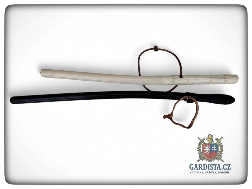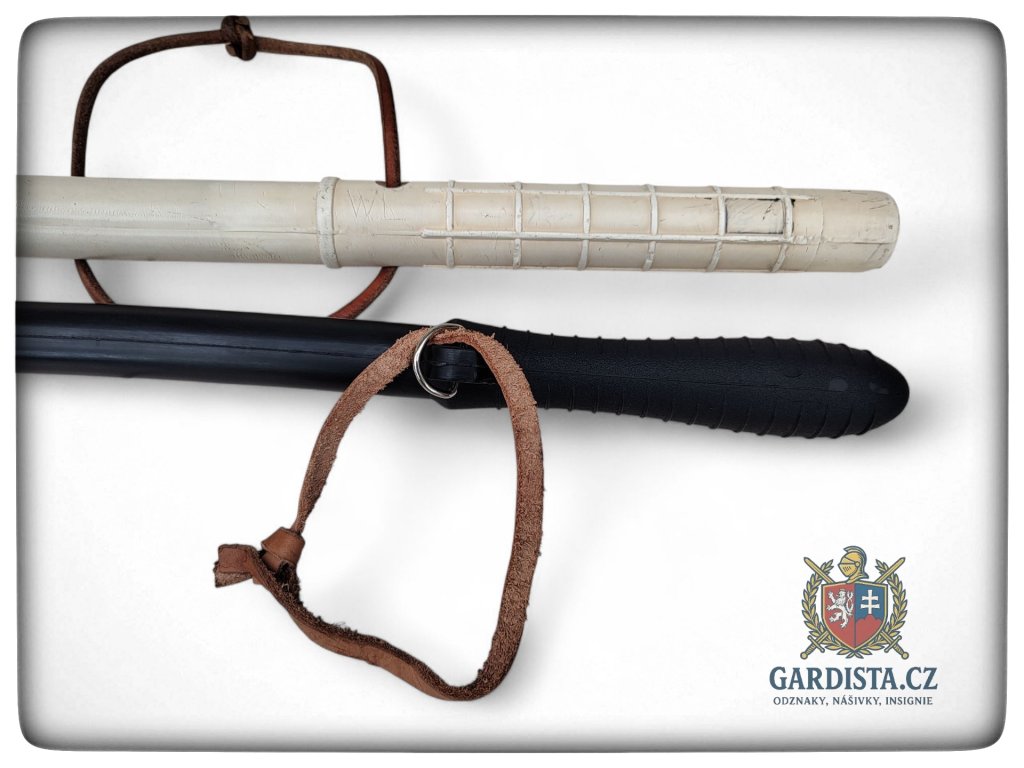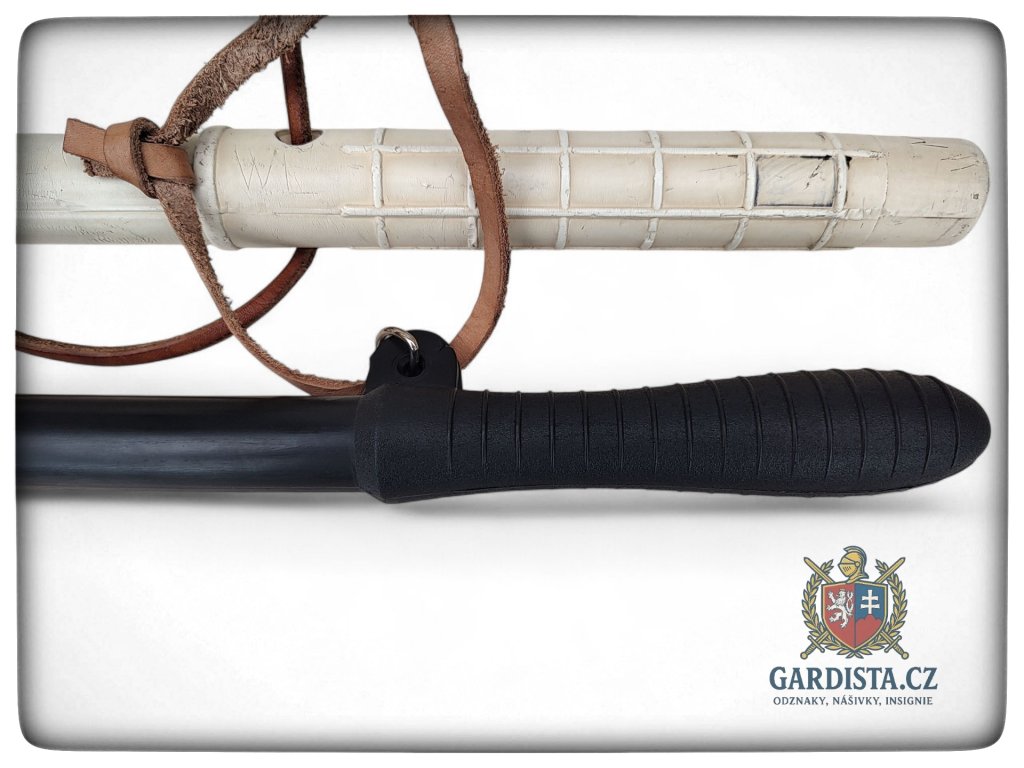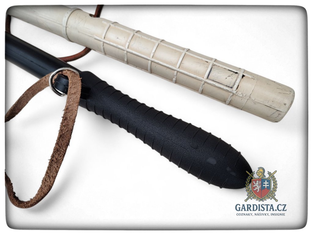 Perfektně zachovalý obušek pořádkových jednotek Deutsche Volkspolizei DDR. Délka 70 cm. Pro srovnání vyfocen s obuškem pro příslušníky pohotovostního pluku SNB,