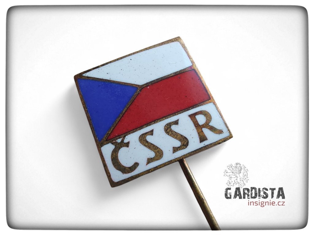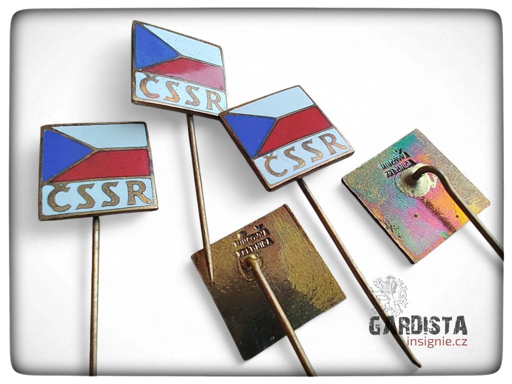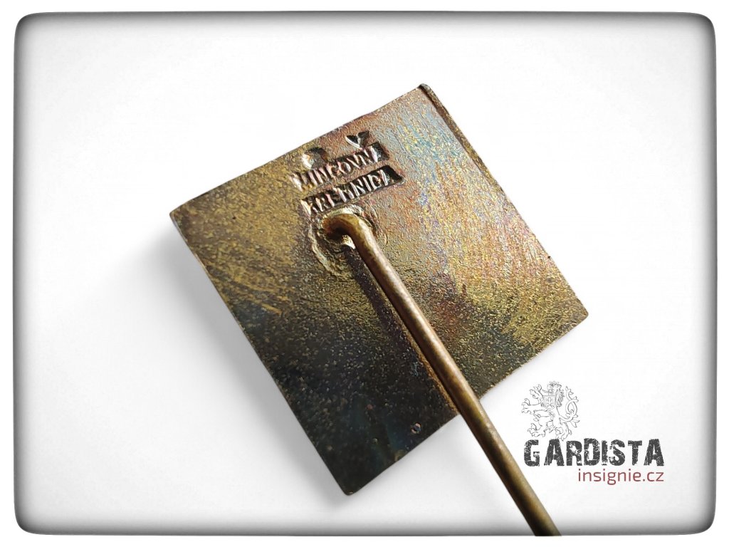 Odznak z přelomu 60. a 70. let minulého století. Tombak a smalt. Rozměry 15 x 15 mm. délka 45 mm.Výrobce: Mincovna Kremnice.
