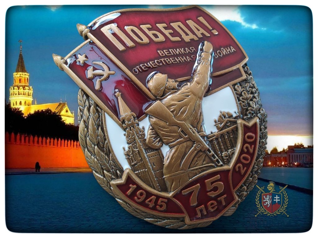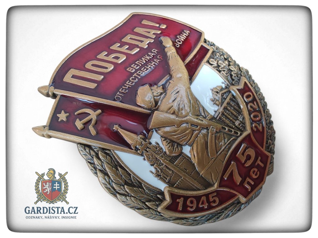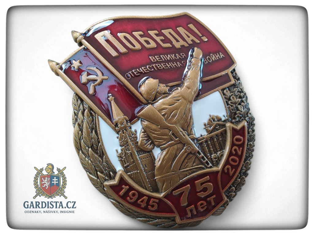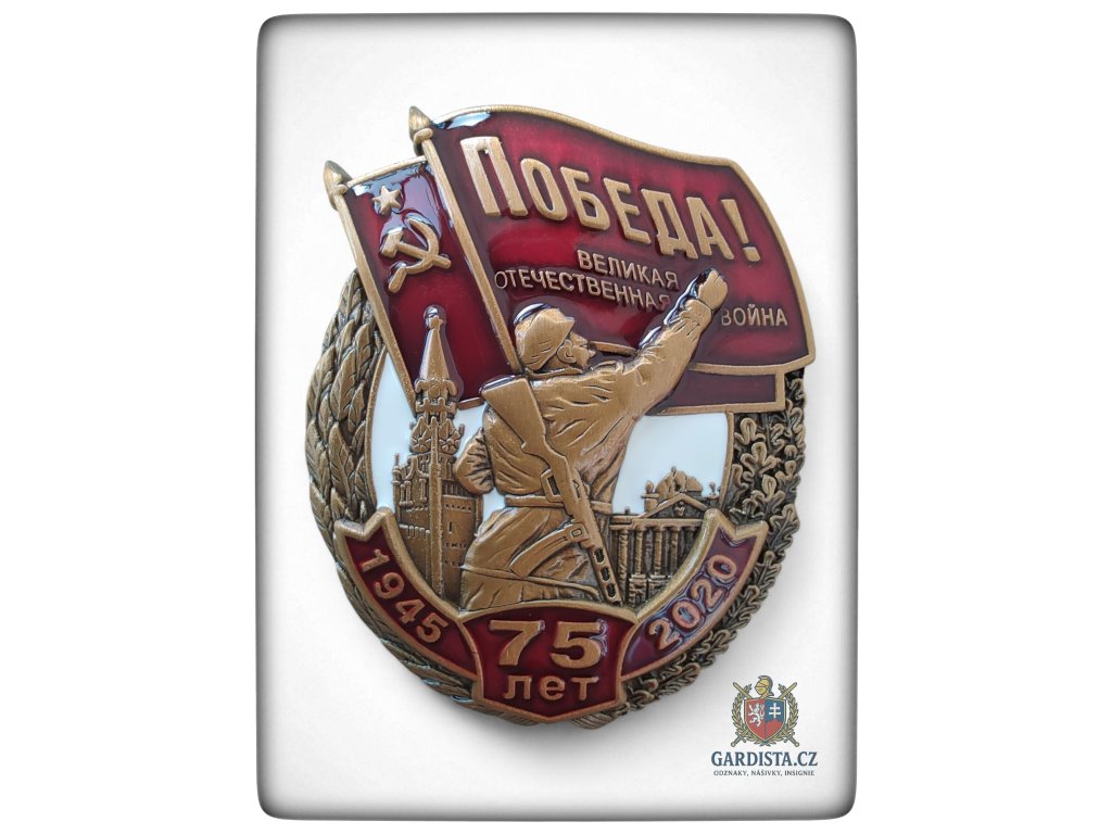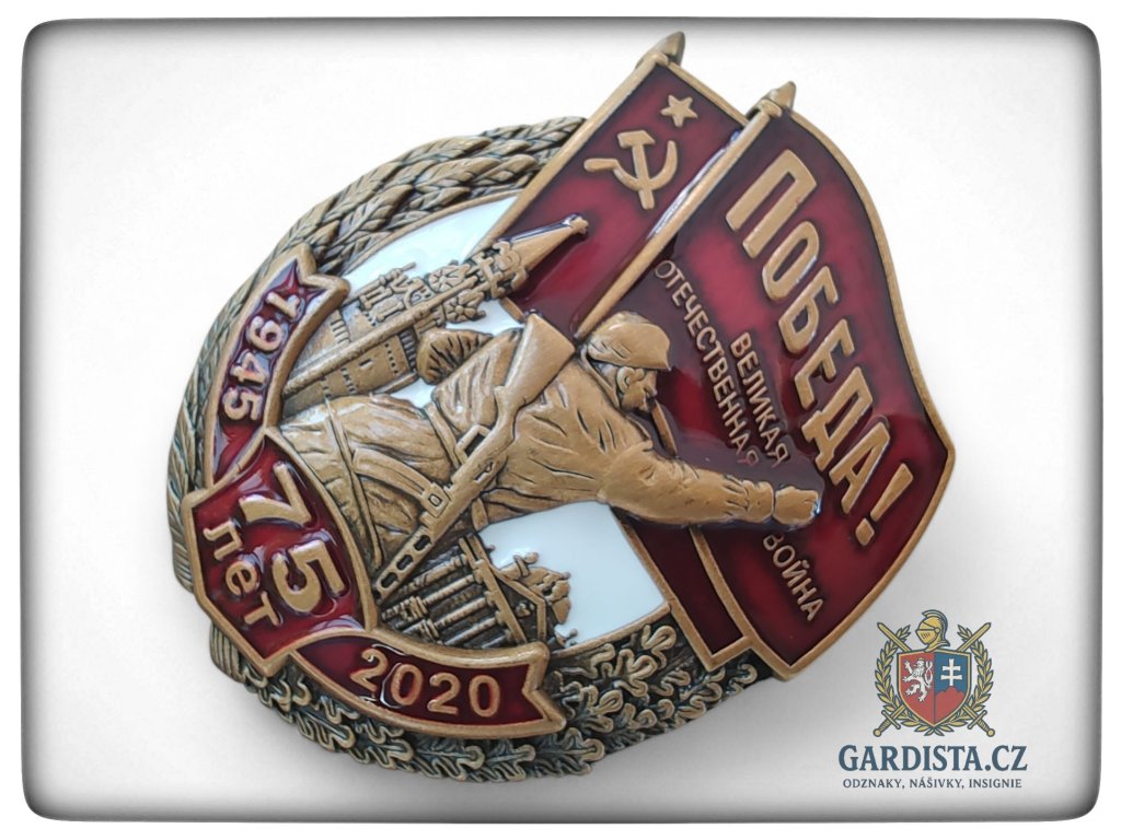 Pamětní odznak k 75. výročí (1945 - 2020) vítezství Rudé armády nad Německem.Zapínání na matici a šroub.Rozměry cca. 50 mm (výška), 40 mm (šířka).