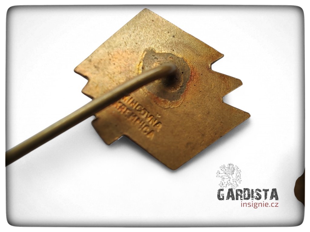 Celkový délka odznaku (vč, jehly) 50 mm, velikost samotného odznaku cca. 15 x 15 mm.