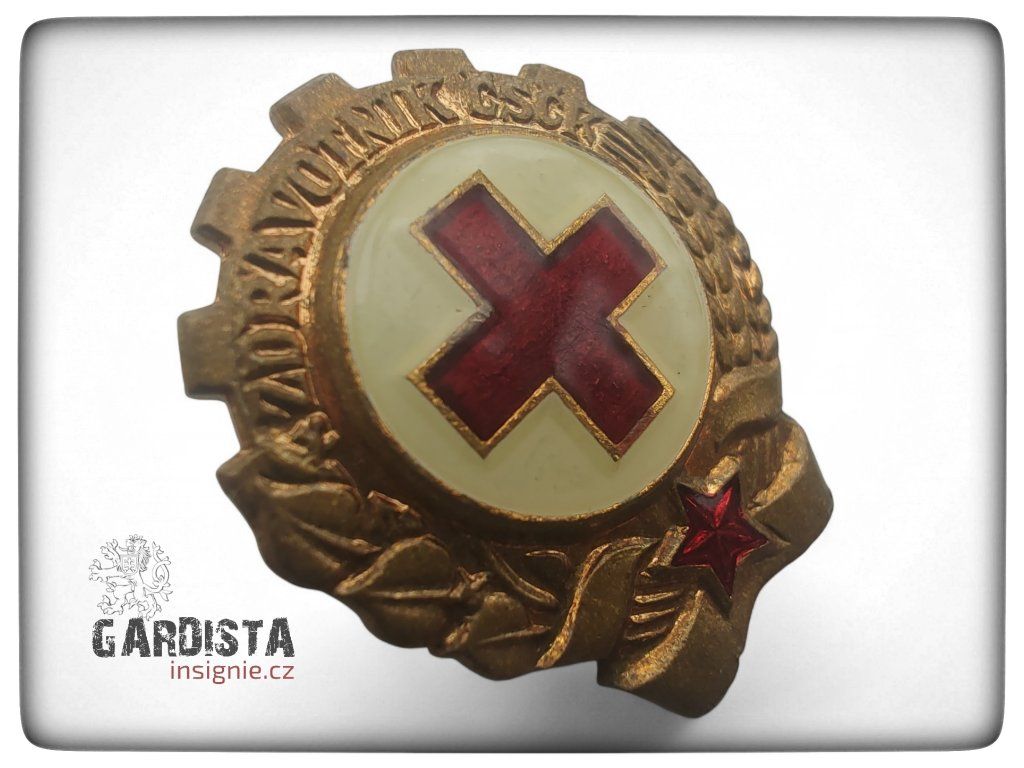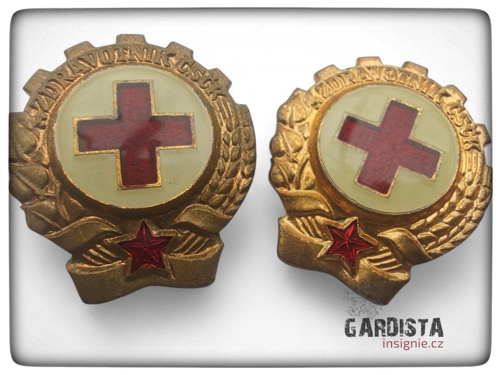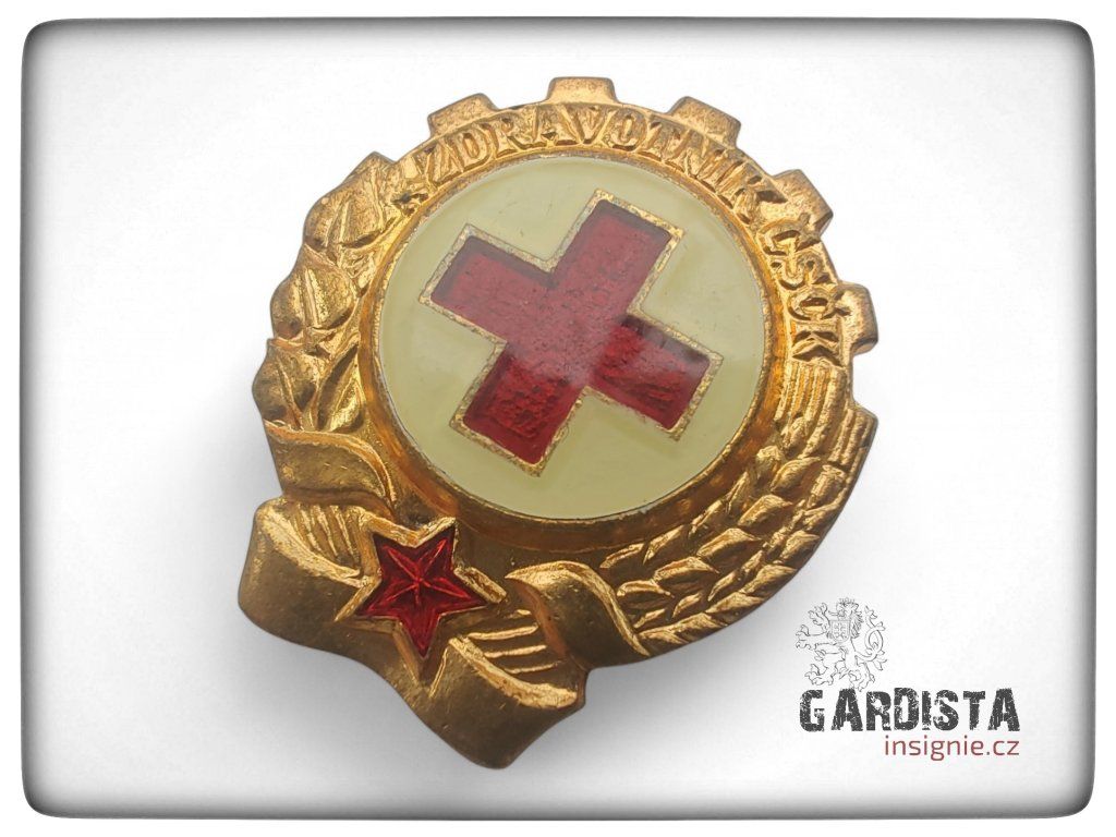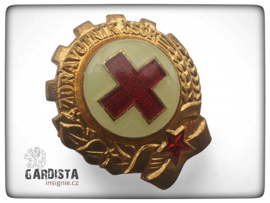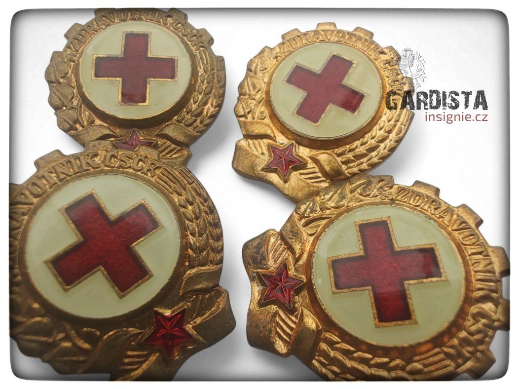 Originál odznaku pro zdravotníky Československého Červeného kříže. Smaltované provedení, používané v 60. - 70. letech minulého století.