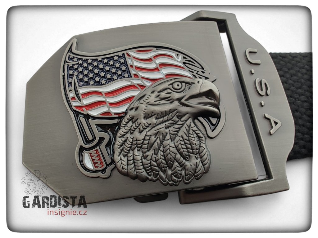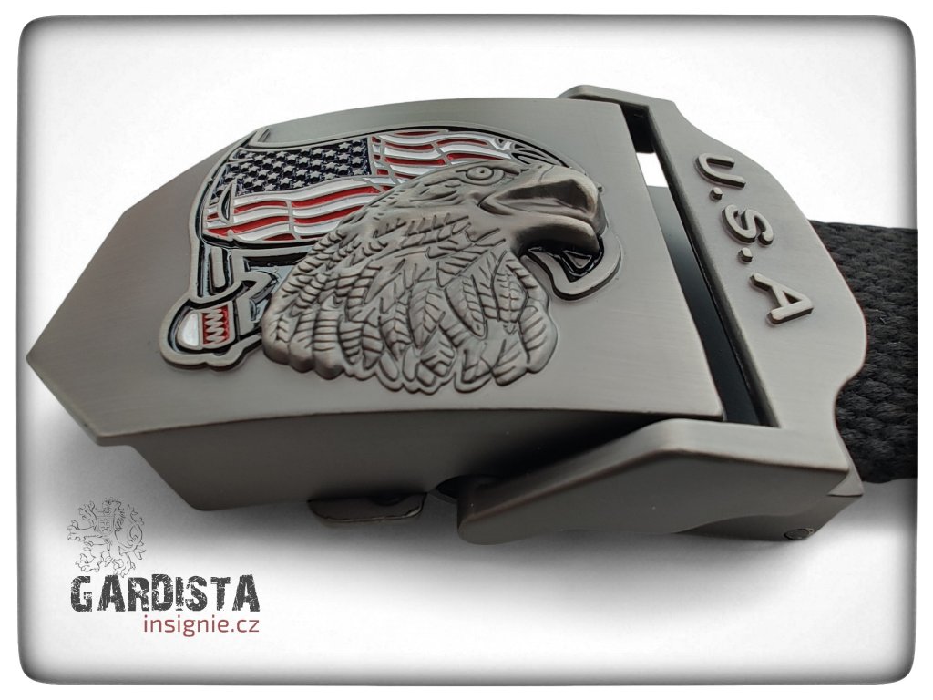 Kartáčovaná ocelová přezka nese symbol USA - Orla bělohlavého. Orel bělohlavý je majestátní dravý pták a od roku 1782 národní symbol Spojených států amerických, reprezentující sílu, svobodu a nezávislost