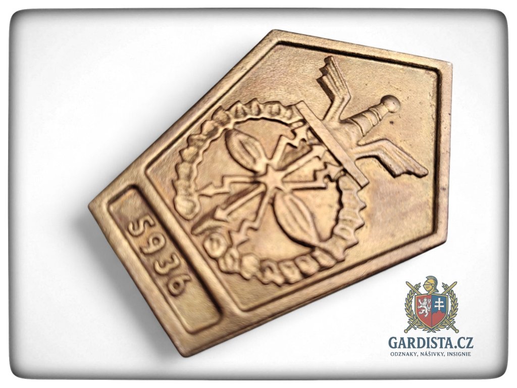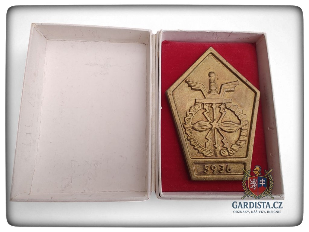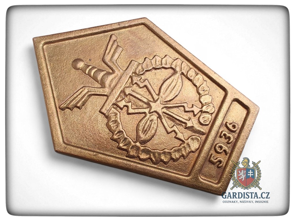 Pamětní armádní plaketa z vojenského útvaru číslo 5936 v Klecanech.Rozměry 85 mm (výška), 58 mm (šířka). Masivní provedení.