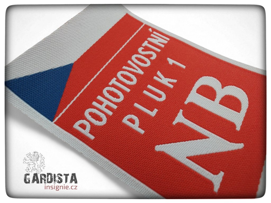 Tkaná (!) nášivka používaná jako rozlišovací znak (nošena na levém rameni) příslušníky Pohotovostního pluku 1 Národní bezpečnosti.