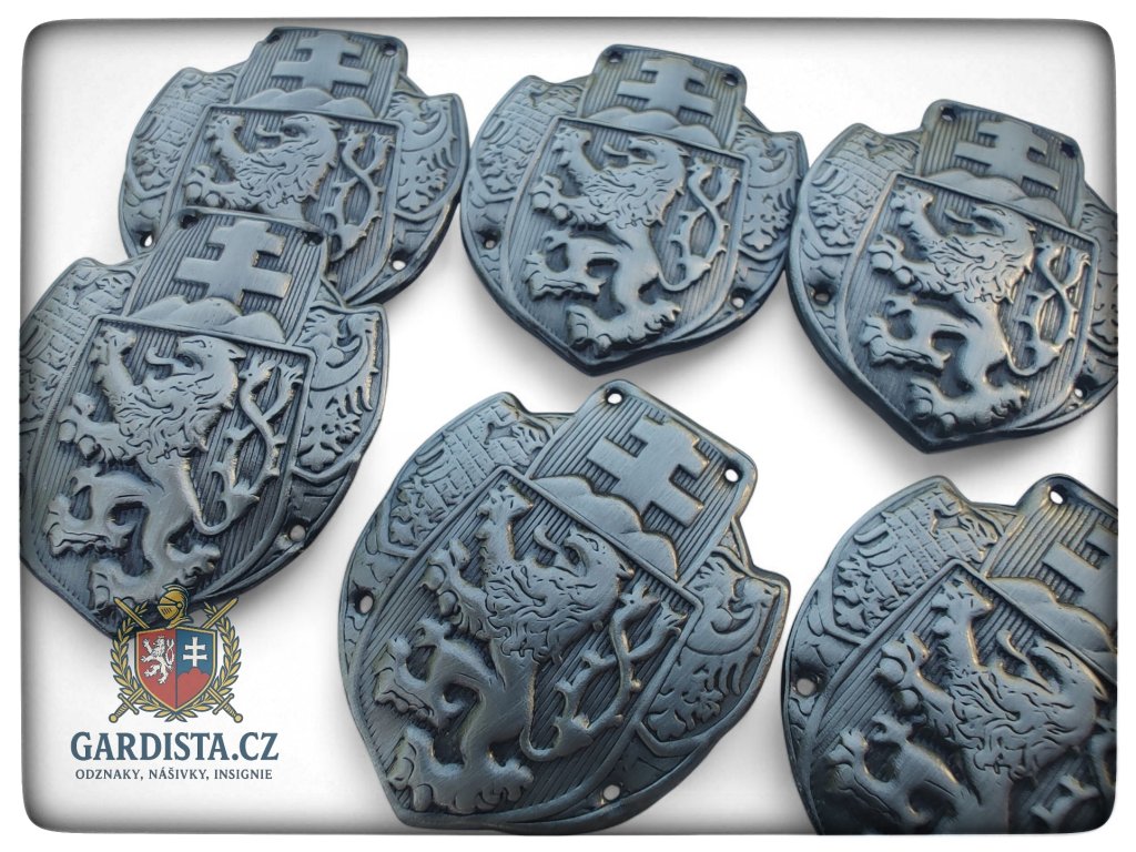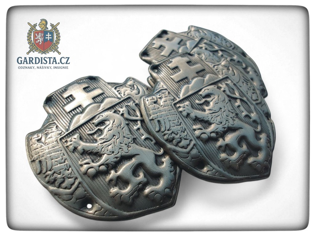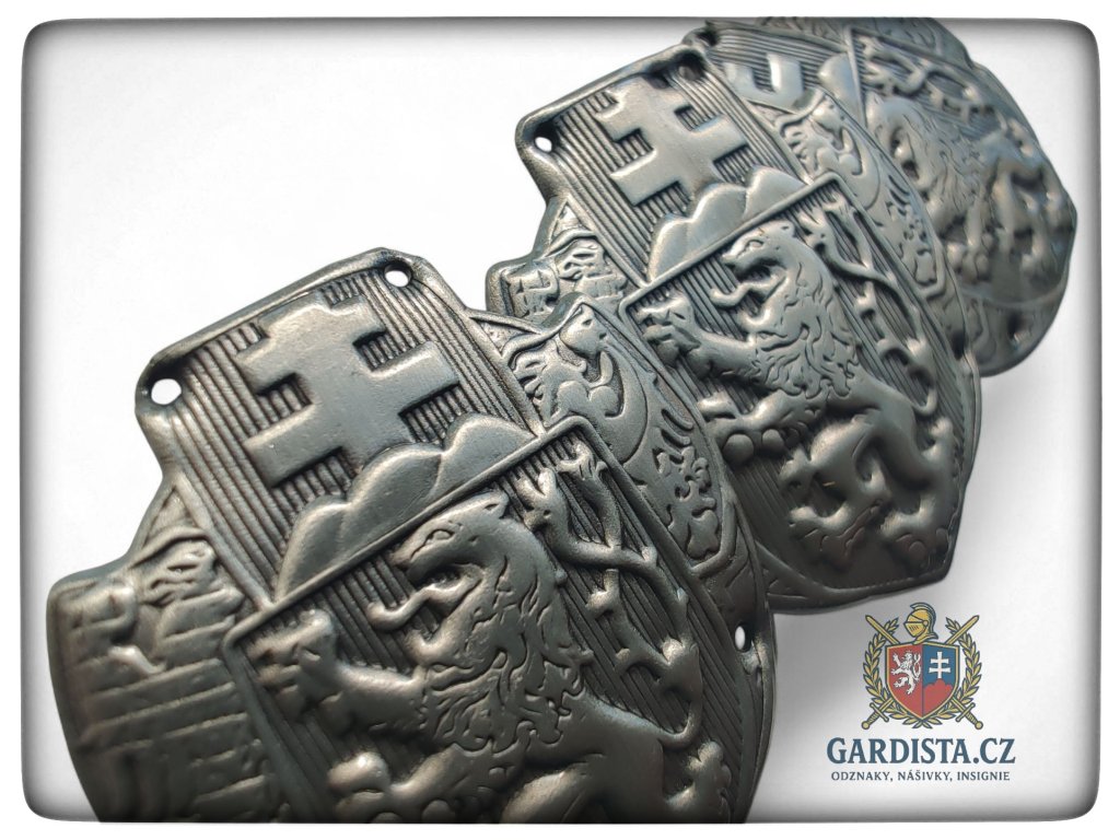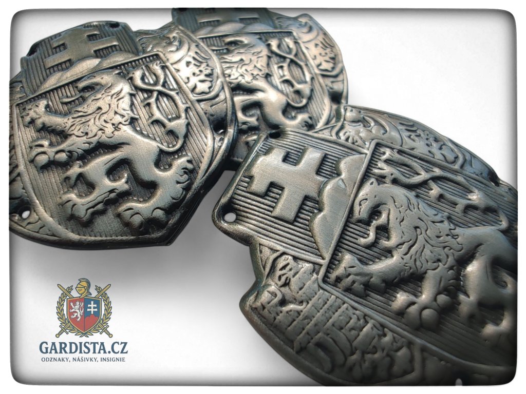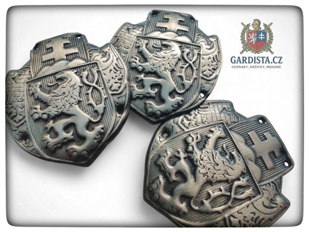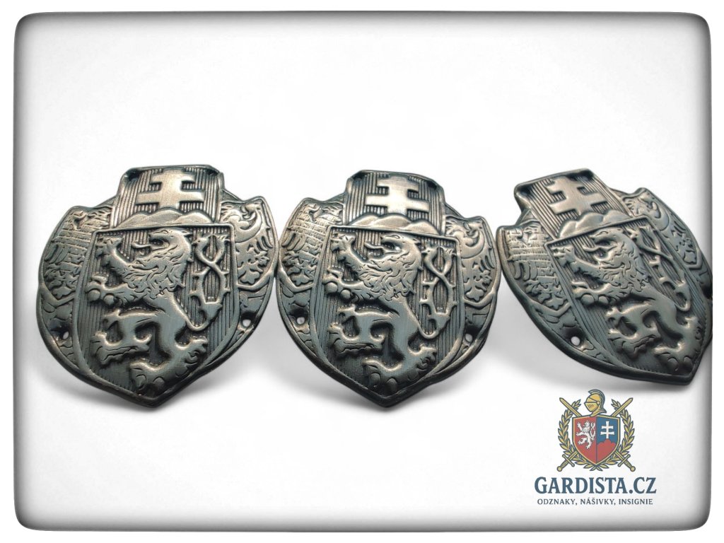 Dle dobového originálu zhotovený našívací čepicový sdružený odznak čs. legií. Barva starostříbro. Rozměry cca. 34 mm (v) x 28 mm (š).