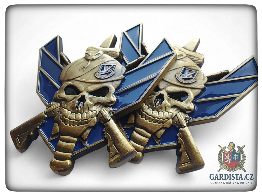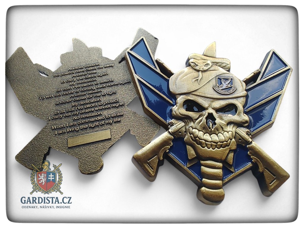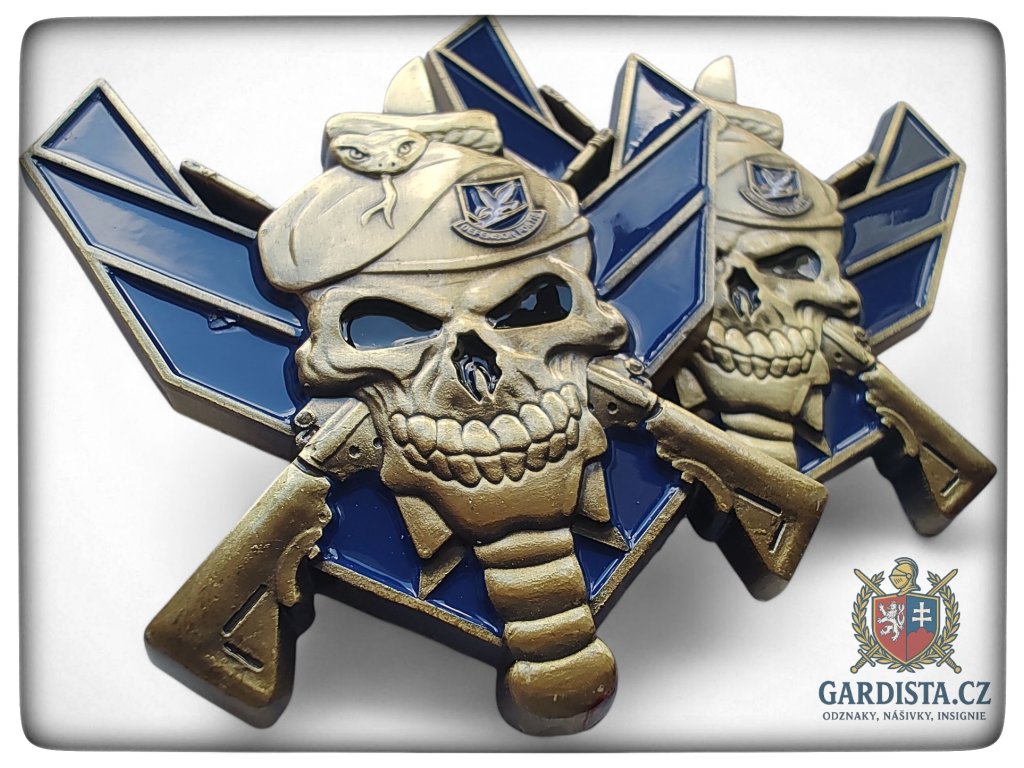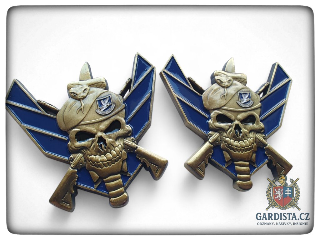 Oboustranná plaketa (rozměry 75 mm (v), 70 mm (š)) se symbolikou Bezpečnostních síl letectva Spojených států (The United States Air Force Security Forces -SF).
